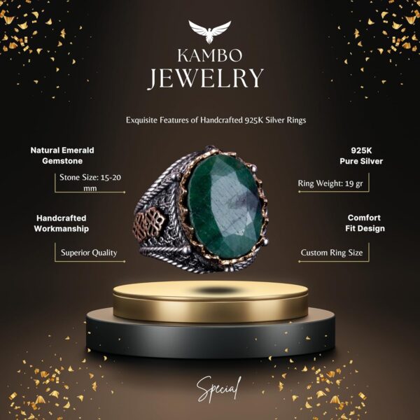 KAMBO Özel Koleksiyonu, 925K Katı Gümüş Erkek Yüzüklerimizin eşsiz zarafetini keşfetmeniz için sizi davet ediyor. Bu yüzükler, çeşitli doğal taşlarla zenginleştirilmiştir. Koleksiyonumuzdaki her doğal taş, kendine has güzelliği ve getirdiği benzersiz enerji ile seçilmiştir. El yapımı yüzüklerimiz, muhteşem zanaatkarlığın bir kanıtıdır ve lüks ile kişisel ifadenin özünü yansıtır. KAMBO, yüzüğünüzü tam boyutunuza ve tercihinize göre özelleştirme seçeneği sunarak, sizi şık takı dünyasına özel bir yolculuğa çıkarır. Doğanın ve sanatın uyumunu, her biri kalite, memnuniyet ve zamansız zarafet vaadi taşıyan olağanüstü doğal taş yüzüklerimizle deneyimleyin. Yüzük Ağırlığı: 19gr Taş Boyutu: 15-20mm
