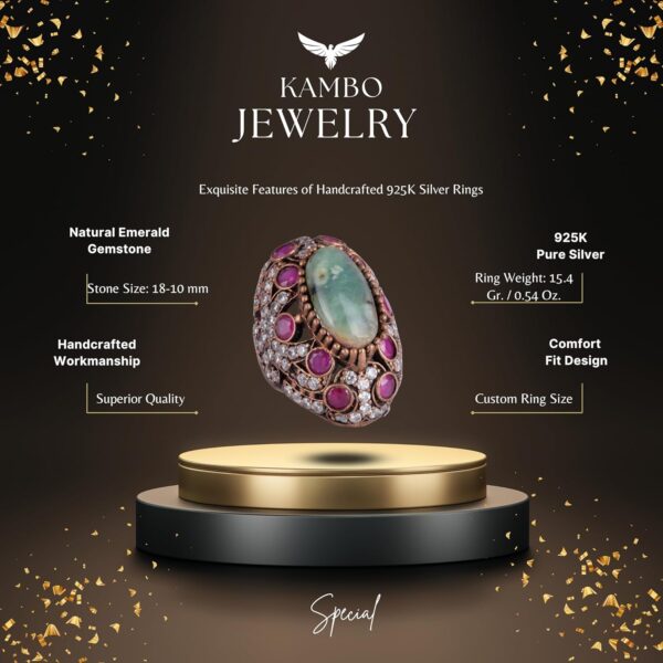 925 Ayar Gümüş Yüzük – Gerçek Doğal Zümrüt Taşı Yüzük – Eşsiz Sultan Yüzüğü