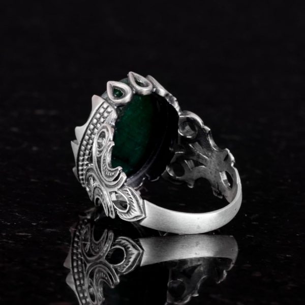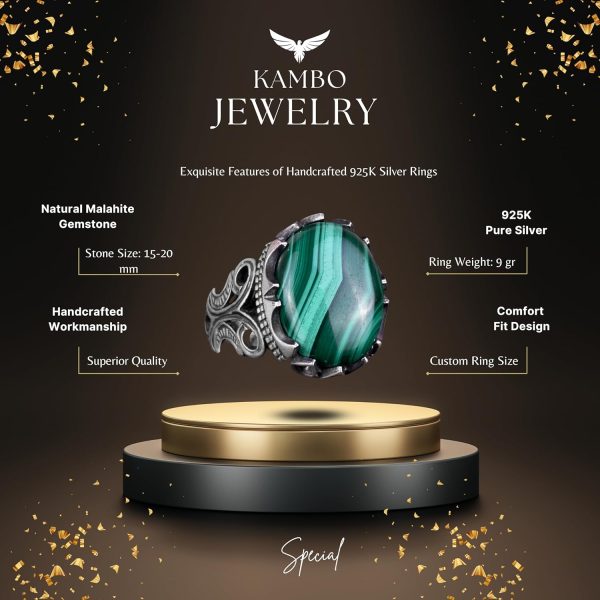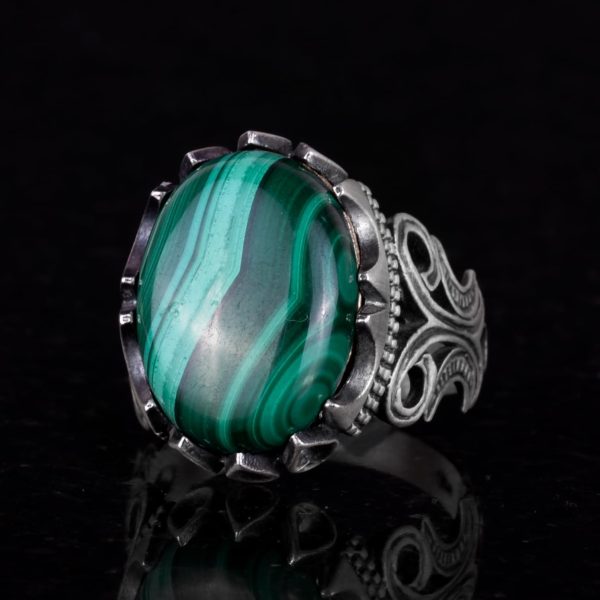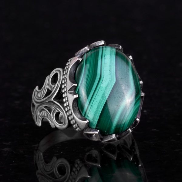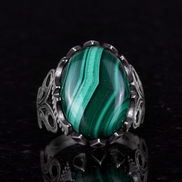925 Ayar Saf Gümüş Erkek Yüzük – Doğal Taş Seçenekleri ile El Yapımı Tasarım (Malakit)