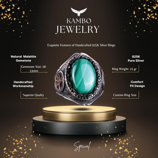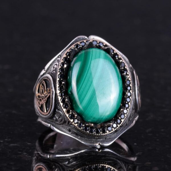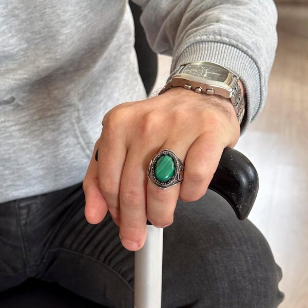 925 Ayar Saf Gümüş Erkek Yüzük – Doğal Taşlarla El Yapımı Şıklık (Malakit Taşı)