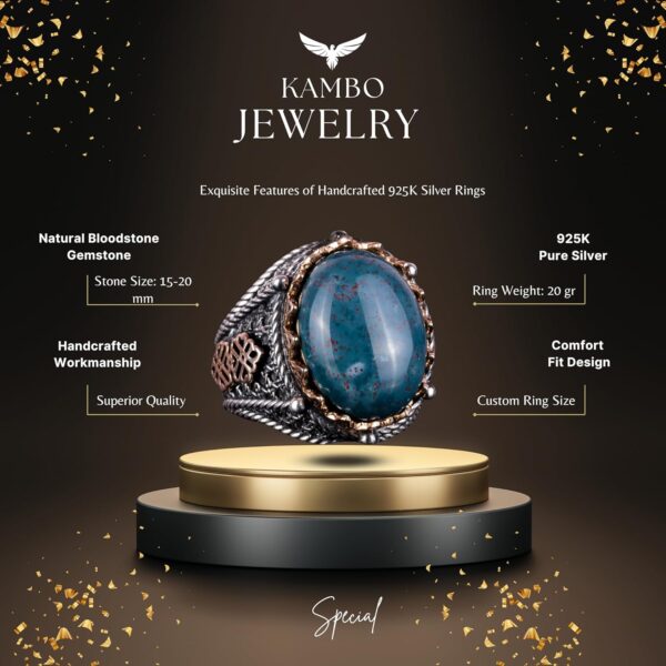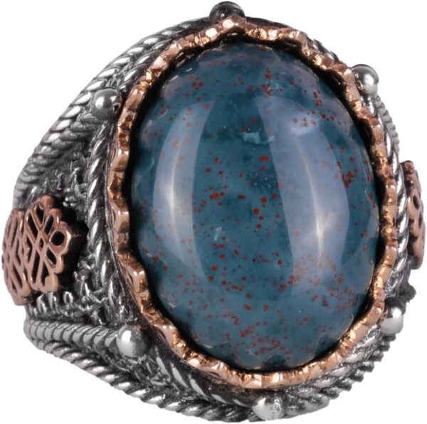 925 Ayar Saf Gümüş Yüzük, Erkekler İçin Gerçek Doğal Taş Yüzük (Yeşil Kan Taşı)