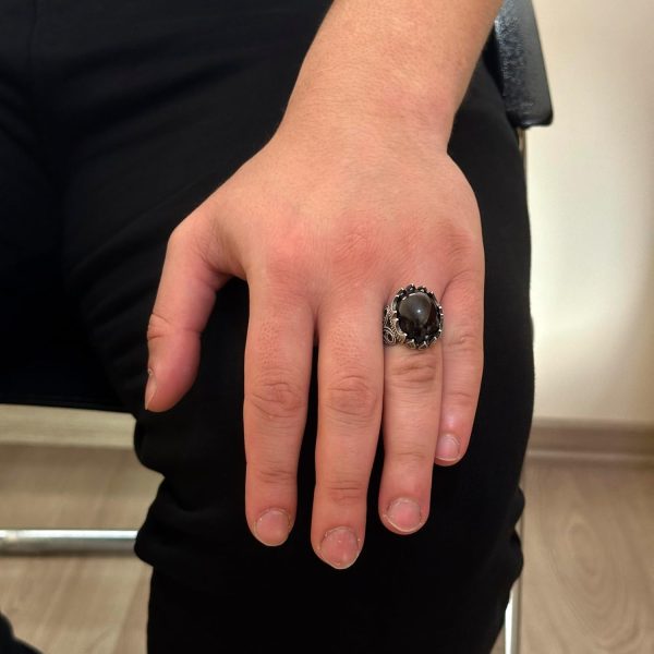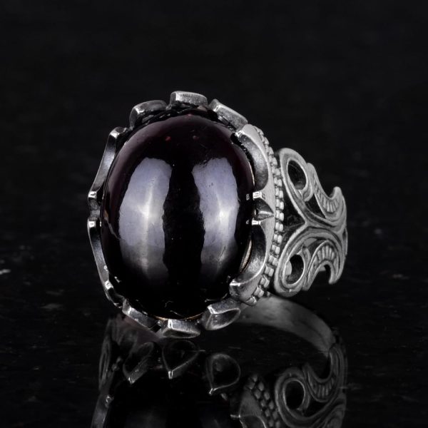 925 Ayar Sert Gümüş Erkek Yüzük – Doğal Taş Seçeneği ile El Yapımı Tasarım (Nar Çiçeği)