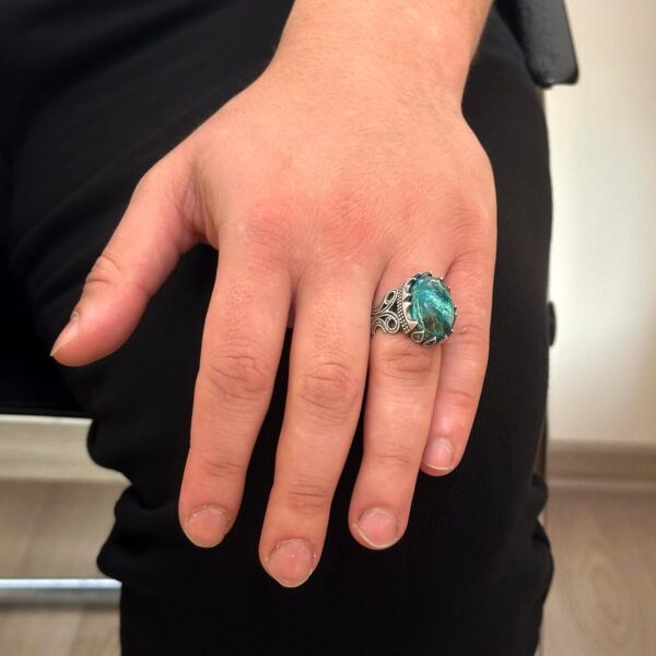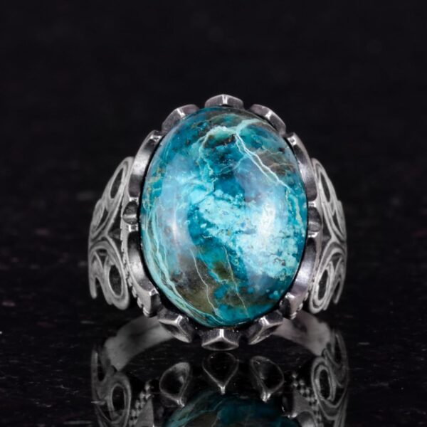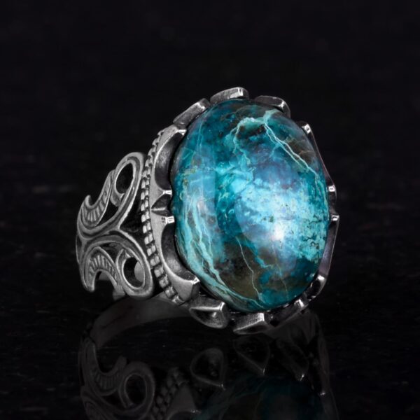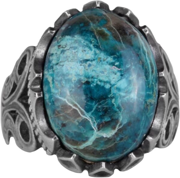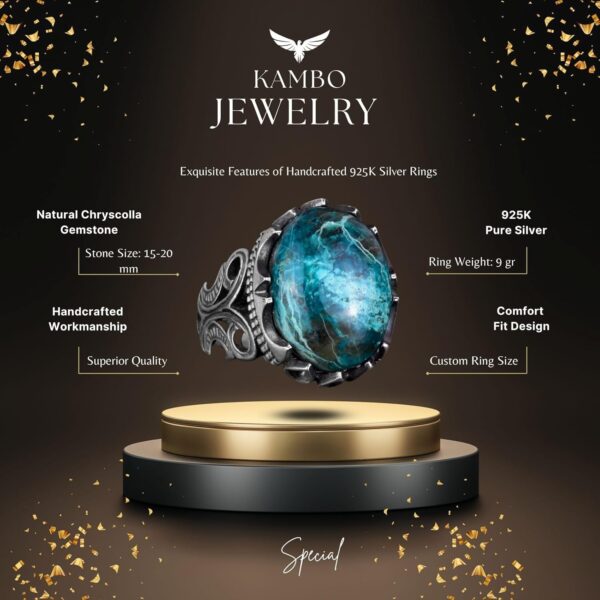 925 Ayar Sert Gümüş Erkek Yüzük – Doğal Taş Seçeneği (Krisokolla)