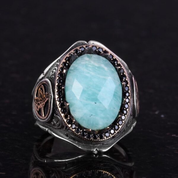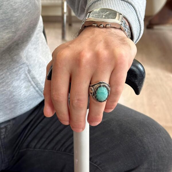 925 Ayar Sert Gümüş Erkek Yüzük Doğal Taşlarla – El Yapımı Şıklık (Amazonit Taşı)