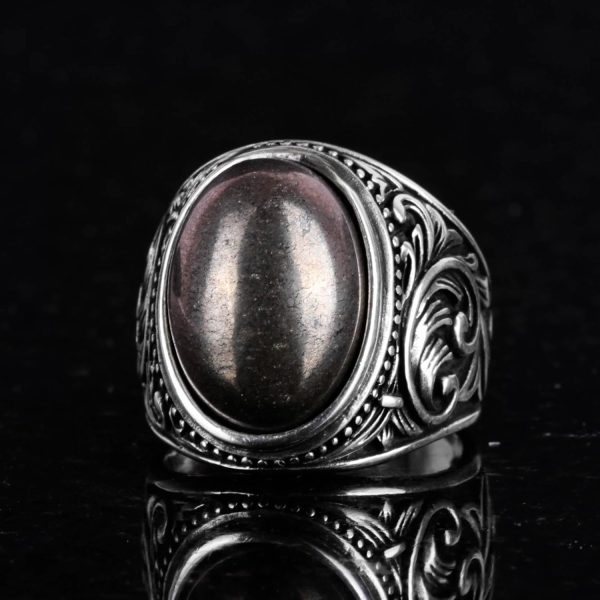 925 Ayar Sert Gümüş Erkek Yüzük, El Yapımı Doğal Pirit Taşlı Yüzük – Refah Manifestasyonu Tasarımı