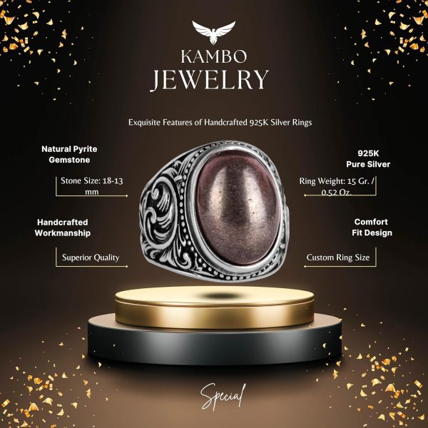 El Yapımı Mükemmellik: KAMBO, 925K saf gümüşte özenle el yapımı doğal pirit taşından bir yüzük sunuyor. Bu yüzük, zanaatkar işçiliği ve benzersiz takı parçalarını değerli bulan erkekler için tasarlanmıştır.