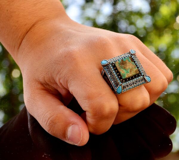 925 Ayar Sterling Gümüş Gerçek Arizona Turkuaz Taşı Erkek Yüzük – El Yapımı Takı