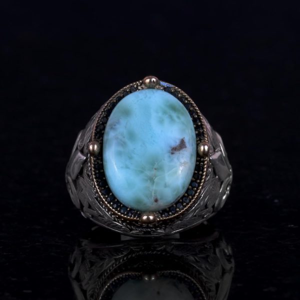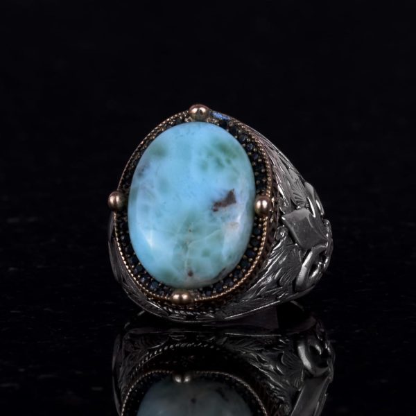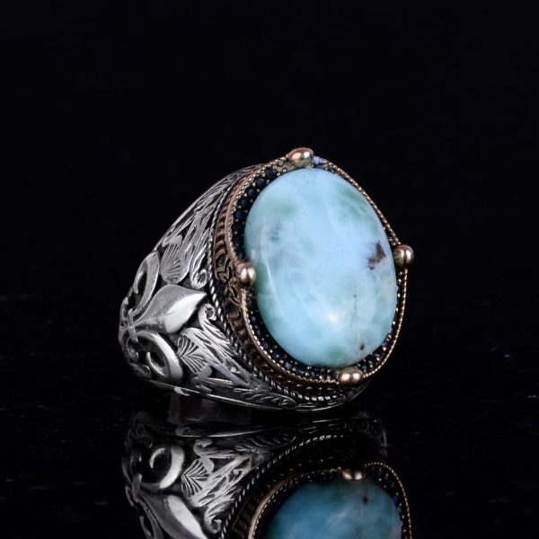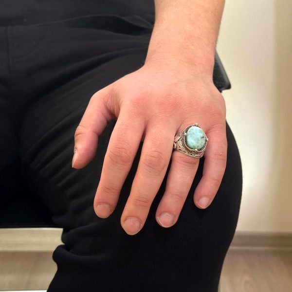925K Ayar Gümüş El Yapımı Erkek Yüzük – Çeşitli Doğal Taşlarla (Larimar) Mevcut