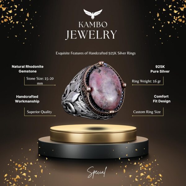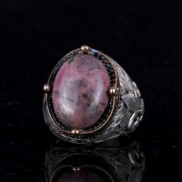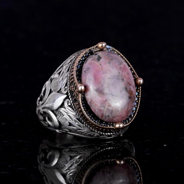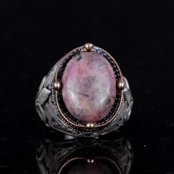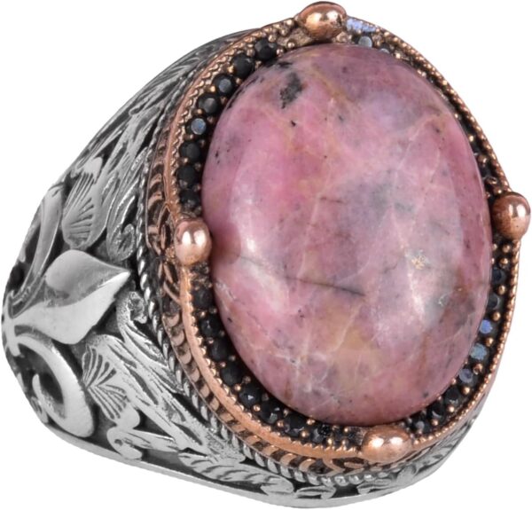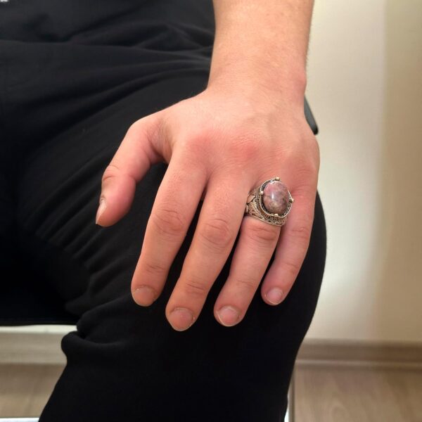 925K Ayar Gümüş El Yapımı Erkek Yüzük – Çeşitli Doğal Taşlarla Mevcut (Rhodonit)