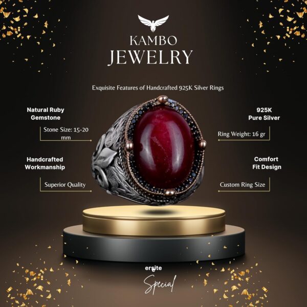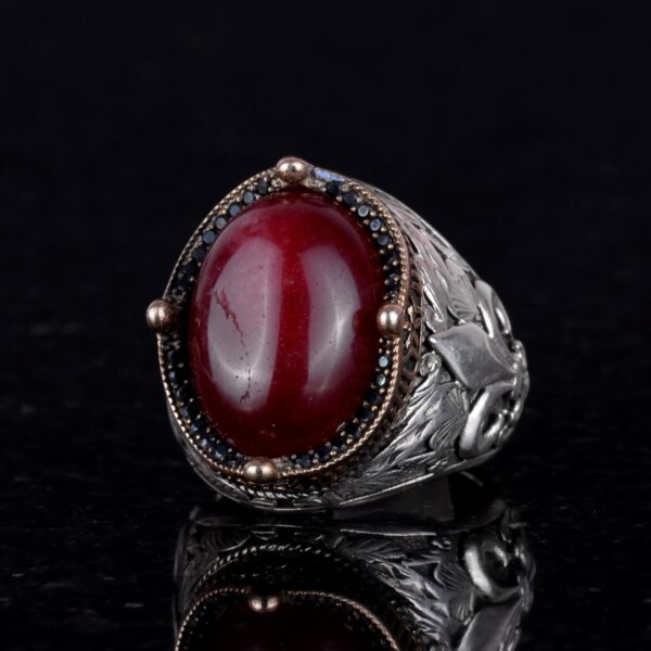 925K Ayar Gümüş El Yapımı Erkek Yüzük – Farklı Doğal Taşlarla Mevcuttur (Cabochon Yakut)