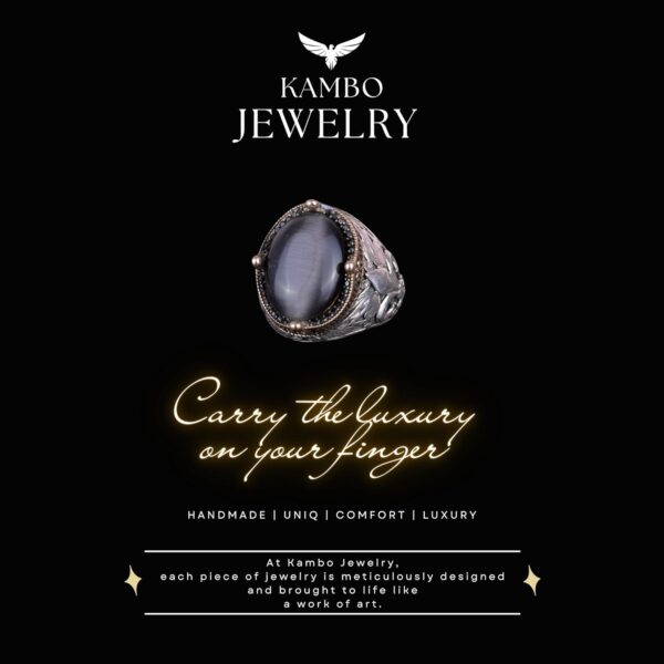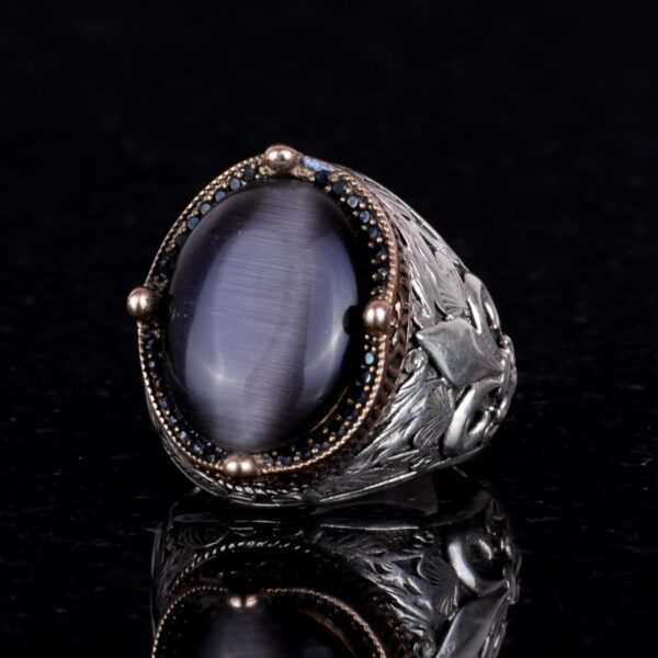 925K Ayar Gümüş Yüzükler Premium Oluşturulmuş Taşlarla (Siyah Kedi Gözlü)