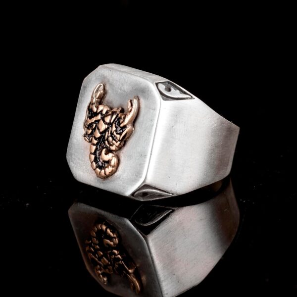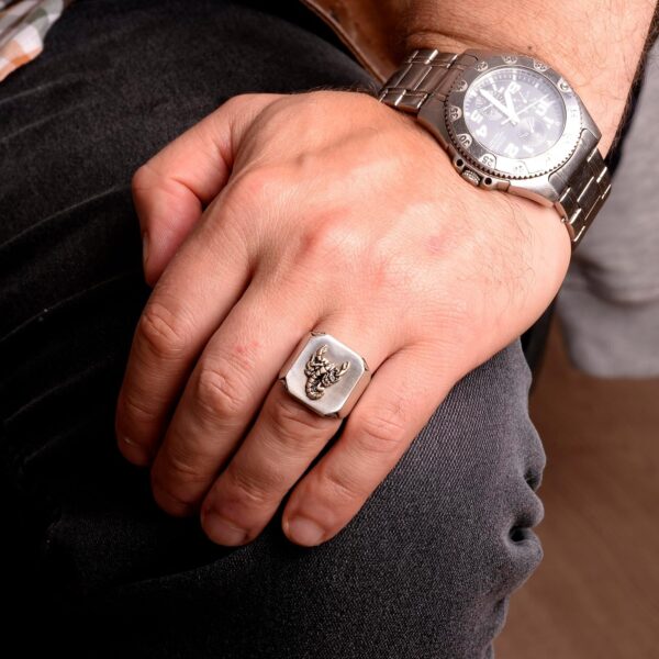 925K Gümüş Erkek Yüzük – İmza Yüzükleri – El Yapımı Yüzük (Akrep)