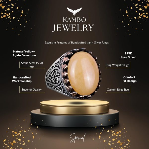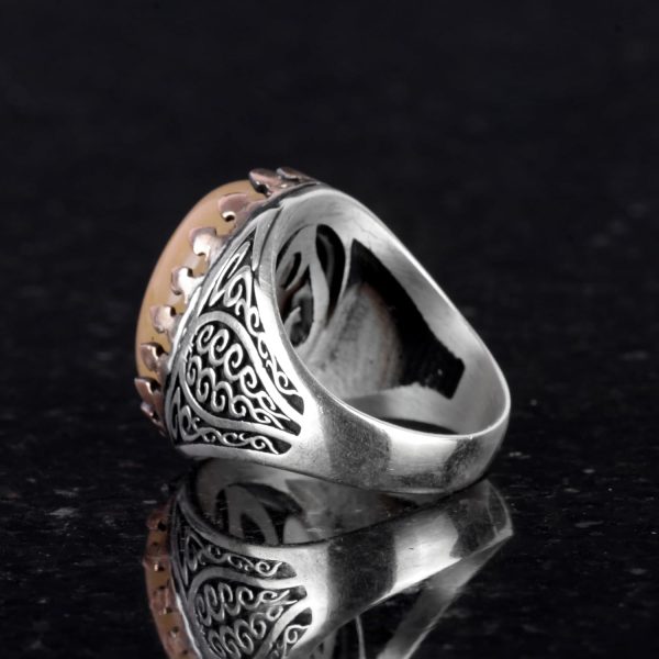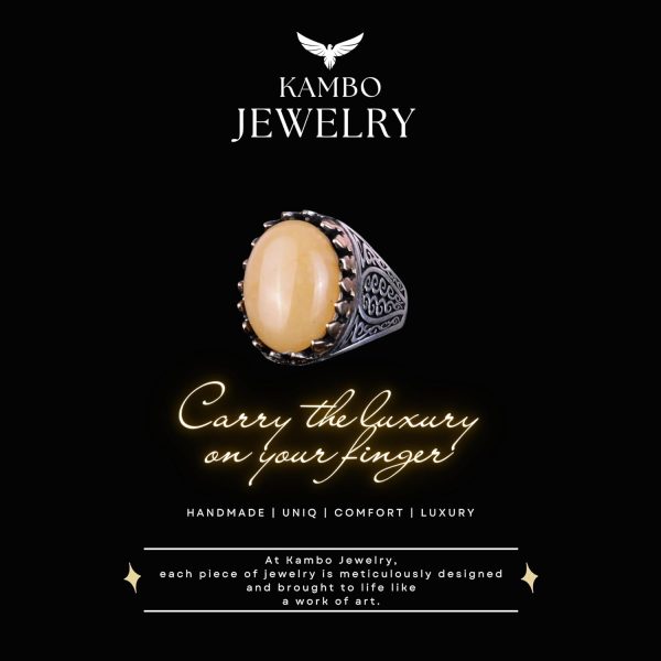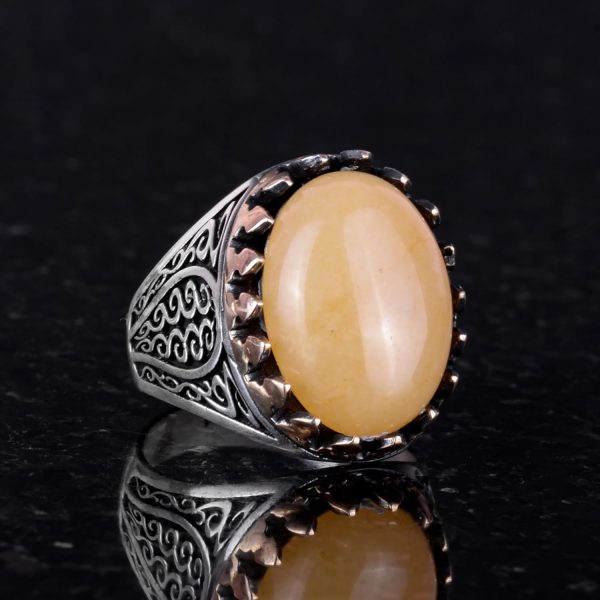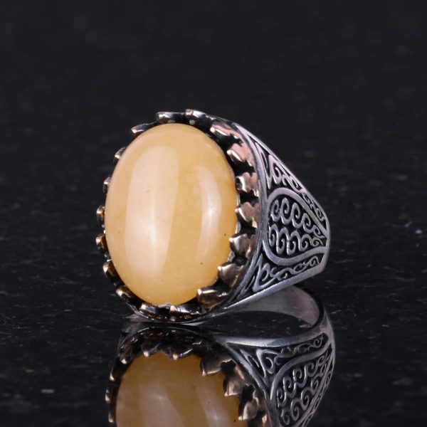 925K Katı Gümüş Erkek Yüzüğü Doğal Taşlarla – El Yapımı Zarafet (Sarı Akik Taşı)