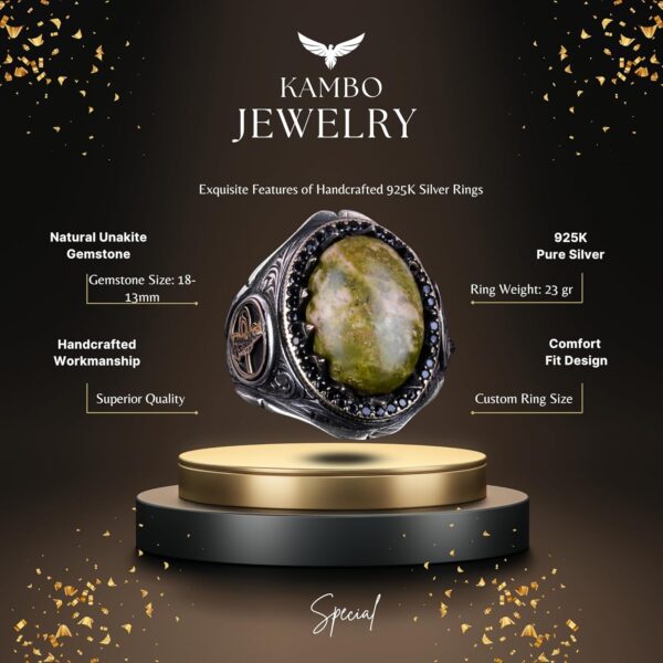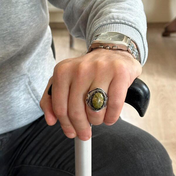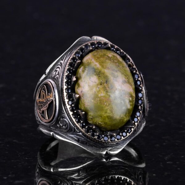 925K Katı Gümüş Erkek Yüzüğü Doğal Taşlarla – El Yapımı Zarafet (Unakite Taşı)