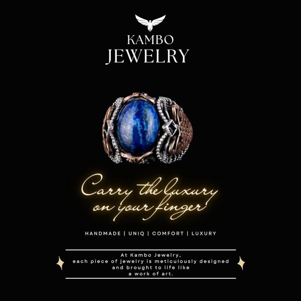 Antik bilgelik dünyasına adım atın, El Yapımı Lapis Lazuli Taş Yüzüğümüz ile. Parlak 925K saf gümüş üzerine yerleştirilmiş bu yüzük, Lapis Lazuli’nin büyüleyici mavi tonlarını sergilerken, gece gökyüzündeki yıldızları andıran altın pirit lekeleri ile süslenmiştir. Yüzyıllardır krallığın, bilgelik ve gerçeğin sembolü olarak kutlanan Lapis Lazuli, kişisel gelişimi ve aydınlanmayı teşvik eder. Her yüzük, anlam ve tarih taşıyan parçalar üretme konusundaki kararlılığımızın bir kanıtıdır; bu nedenle KAMBO Lapis Lazuli Yüzüğü sadece bir takı değil, bilgi ve kendini keşfetme ışığıdır.