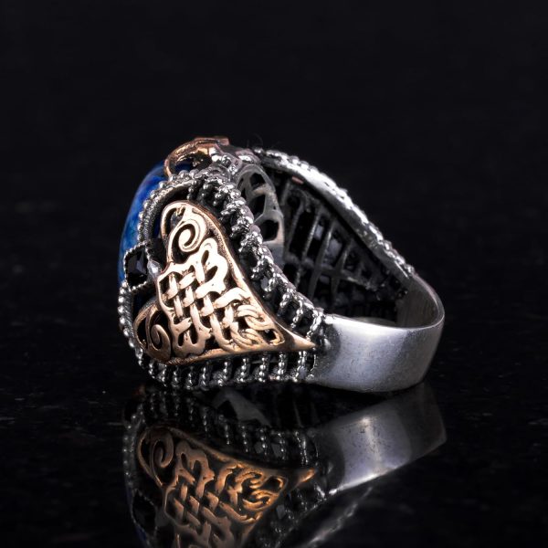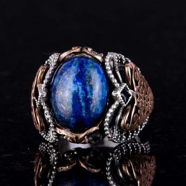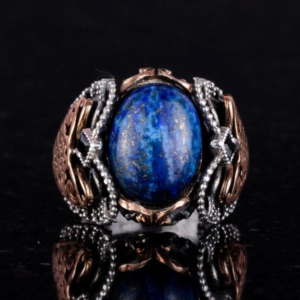 925K Katı Gümüş Erkek Yüzük, Doğal Lapis Lazuli Taş Yüzük, Bilgelik ve Gerçek Tasarımı