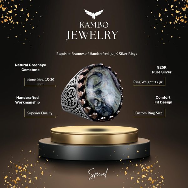 KAMBO Exclusive Collection, 925K Solid Sterling Silver Erkek Yüzüklerimizin eşi benzeri olmayan zarafetini keşfetmeniz için sizi davet ediyor. Koleksiyonumuzdaki her doğal taş, kendine has güzelliği ve getirdiği eşsiz enerji ile seçilmiştir. El yapımı yüzüklerimiz, lüks ve kişisel ifadenin özünü yansıtan olağanüstü zanaatkarlığın bir göstergesidir. Doğanın ve sanatın uyumunu deneyimleyin; her biri kalite, memnuniyet ve zamansız zarafet vaat eden istisnai taşlı yüzüklerimizle.