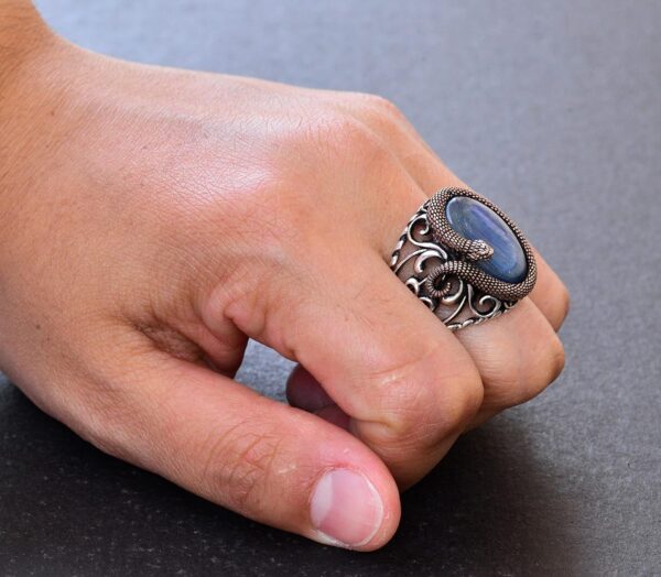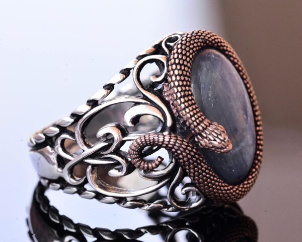 FALCON JEWELRY’nin Yılan 925K Gümüş Erkek Doğal Taş Yüzüğü ile antik gizemler dünyasına adım atın. Bu koleksiyon, kültürler boyunca güç ve bilgelikle anılan yılanların zamansız sembolizmini, doğal taşların cazibesiyle birleştiriyor. Her yılan figürü, çevrelediği taşla uyumlu olacak şekilde özenle işlenmiştir ve bu, sadece bir stil ifadesi değil, aynı zamanda içsel güç ve koruma sembolü olan bir yüzük yaratır. Her yüzük, efsanevi yılan mitolojisine benzersiz bir bağlantı sunarak, mükemmel bir şekilde el yapımı sanatsal bir kutlamadır.