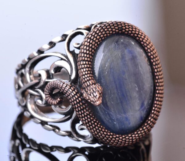 925K Solid Sterling Silver Erkek Yüzüğü Doğal Taşlarla – El Yapımı Zarafet (Kyanit Taşı)