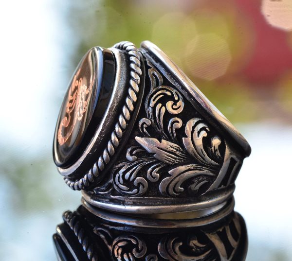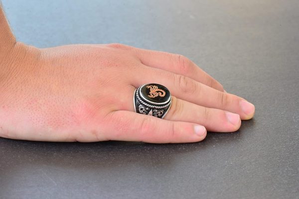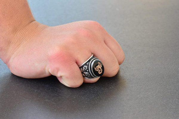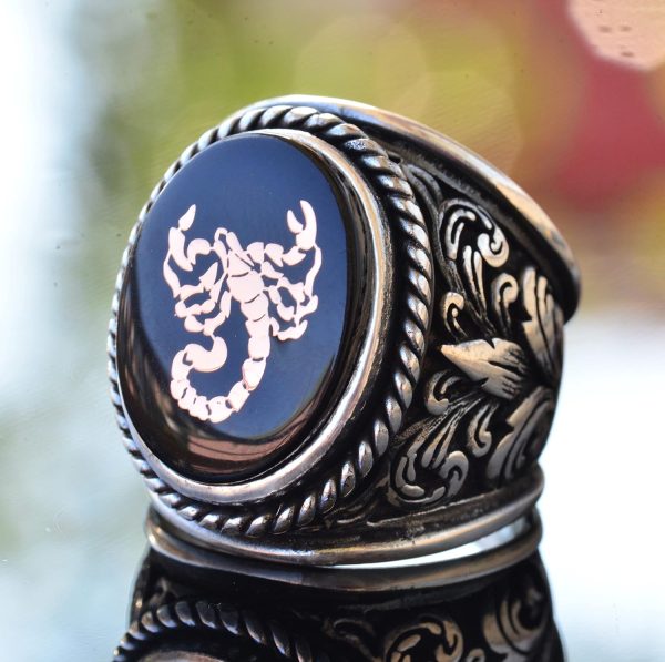Akrep Hayvan Yüzüğü – Erkekler için Gümüş Lilyum Desenli Büyük Yüzük