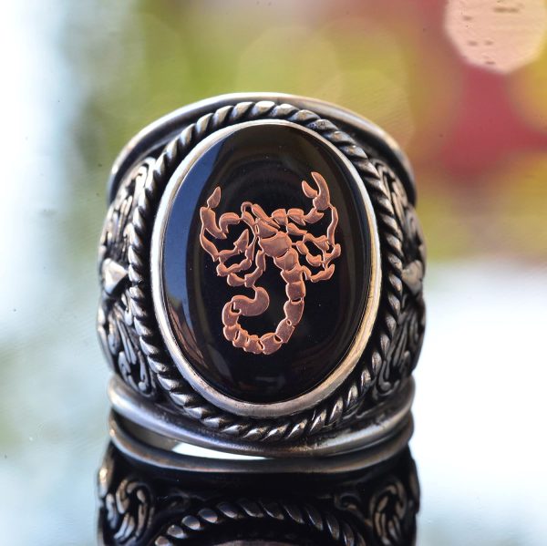 Yüzük, koruma, dönüşüm ve dayanıklılığı simgeleyen çarpıcı bir akrep tasarımına sahiptir. Her yüzük, zarafet ve saflık katmak için özenle tasarlanmış bir lilyum deseni ile de dekoratif bir şekilde işlenmiştir.