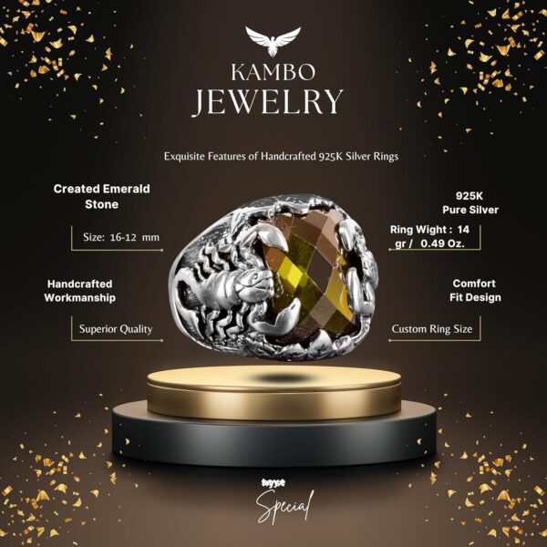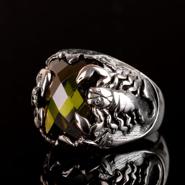 Akrep Yüzüğü, Hayvan Yüzükleri, Yeşil Zirkon Taş Yüzük, 925 Ayar Gümüş Erkek Yüzüğü Taş Boyutu: 20-15 mm Ağırlık: 13.31 gr