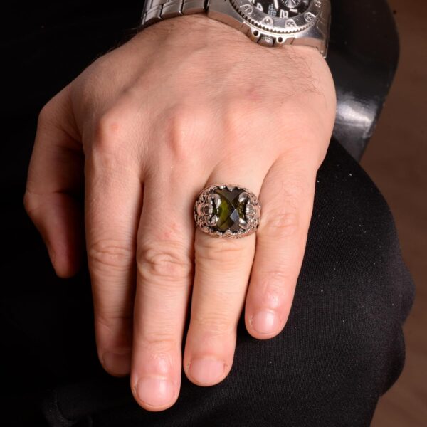 Akrepler Yüzüğü, Hayvan Yüzükleri, Yeşil Zirkon Taşlı Yüzük, 925 Ayar Gümüş Erkek Yüzüğü