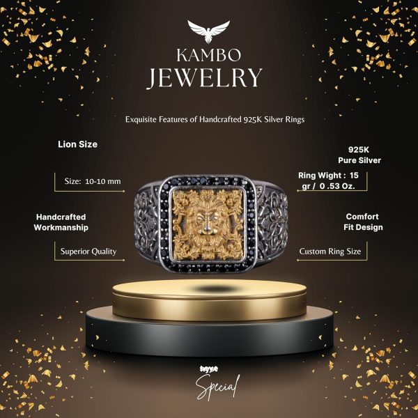 Aslan başı tasarımı, gümüş bir bant üzerine zarif bir şekilde yerleştirilmiştir ve ustalarımızın becerisi ile sanatını sergilemektedir. Her yüzük, her parçanın benzersiz ve en yüksek kalitede olmasını sağlamak için titizlikle el yapımı olarak üretilmektedir.