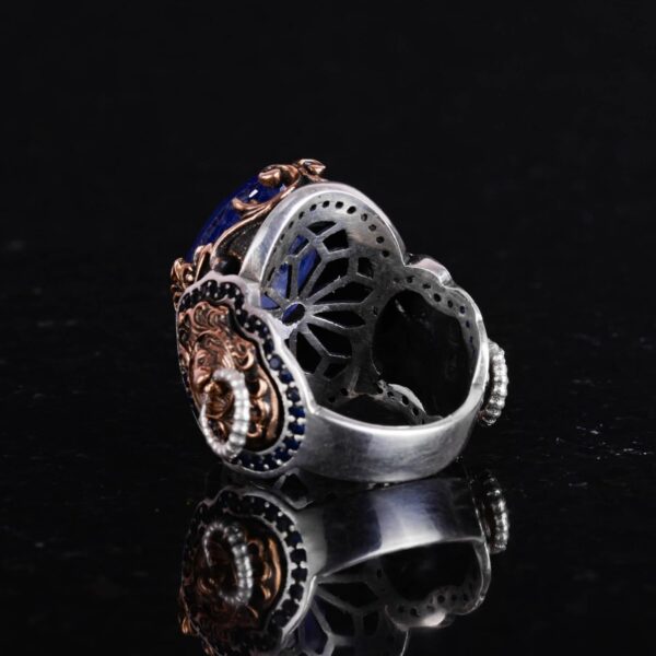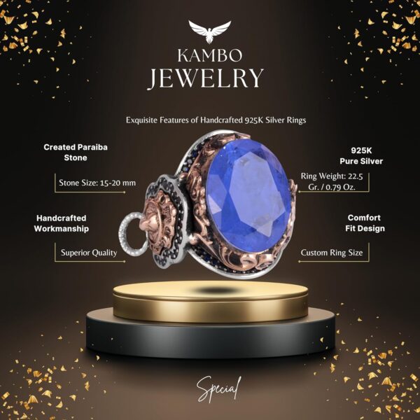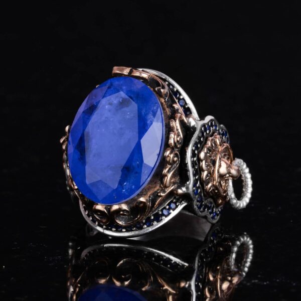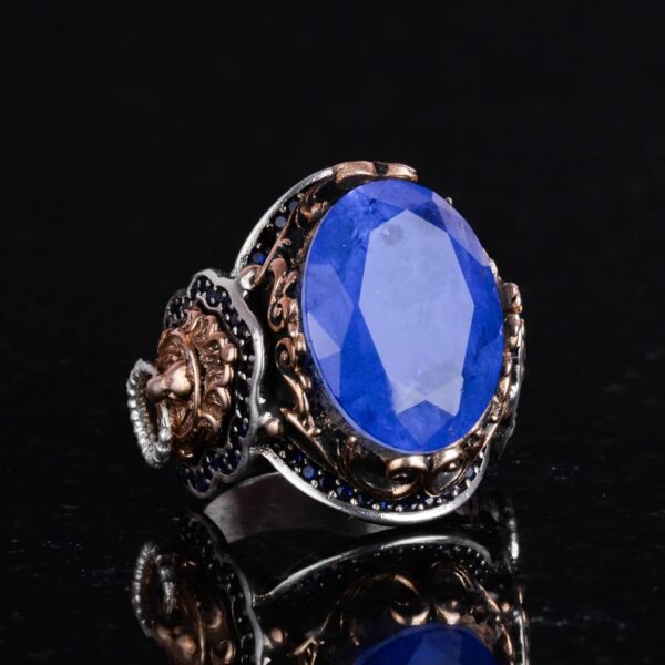 Aslan Sembol Yüzük, Lacivert Paraiba Yapay Taş Yüzük, 925 Ayar Gümüş Yüzük, Şık El Yapımı Gümüş Erkek Yüzüğü