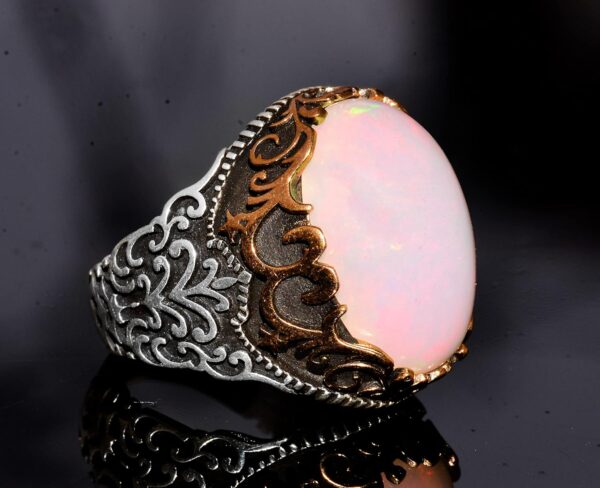 Avustralya Opali Gerçek Doğal Taş Yüzük – 10.00 Karat – Erkek Yüzüğü – 925 Ayar Gümüş Yüzük