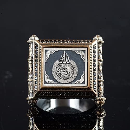 Ayatul Kursi Oymalı Gümüş Erkek Yüzük, El Yapımı Sterlin Gümüş İslami Erkek Yüzük ile Allah Yazısı