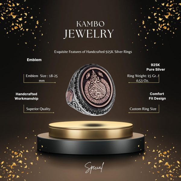Derin İslami anlamlarla tasarlanan bu yüzük, Müslümanlar için anlamlı bir aksesuardır. İnancı, korumayı ve güçlü bir manevi bağı simgeler; bu da onu sahibinin değerli bir parçası haline getirir.