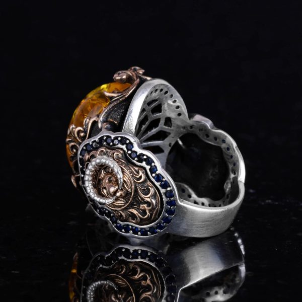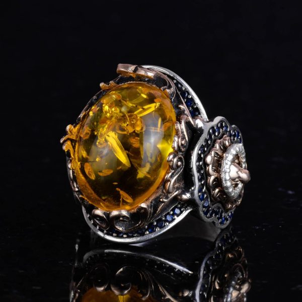 Bal Amber Yapay Taş Yüzük | Şık El Yapımı 925 Ayar Gümüş Erkek Yüzük