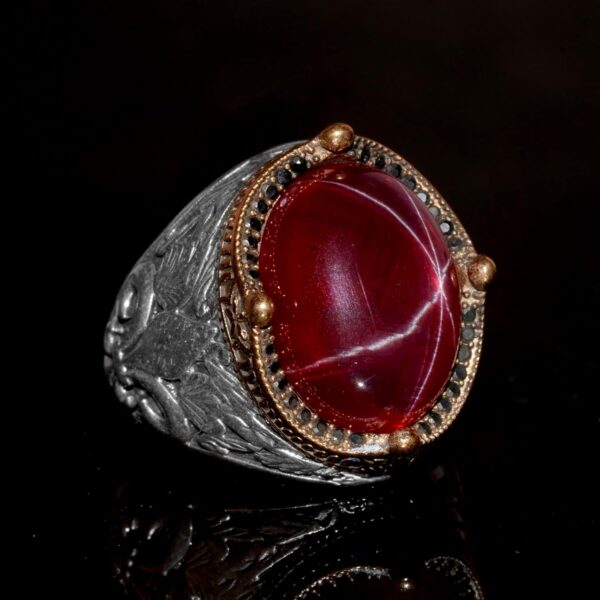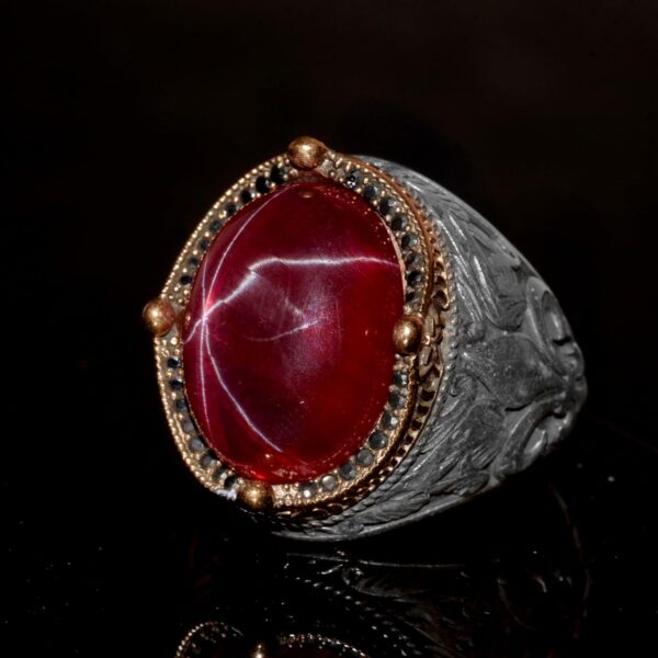 925 Ayar Gümüş Erkek Yüzük – Yıldız Yakut (Star Ruby) Taşlı Özgün El Yapımı Model