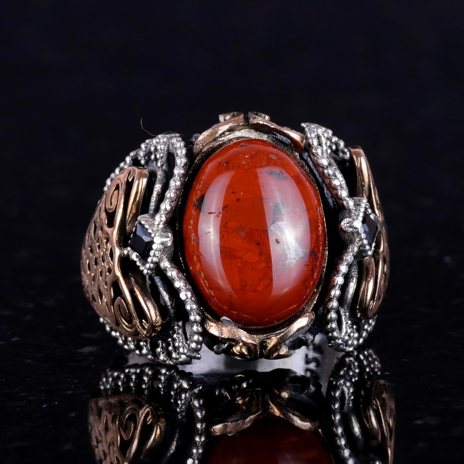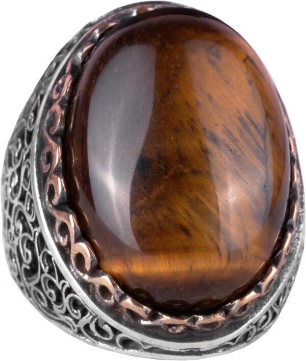 Büyük Gümüş Yüzük, 925 Ayar Gümüş Erkek Yüzük, Doğal Taş Yüzük, El Yapımı Yüzük