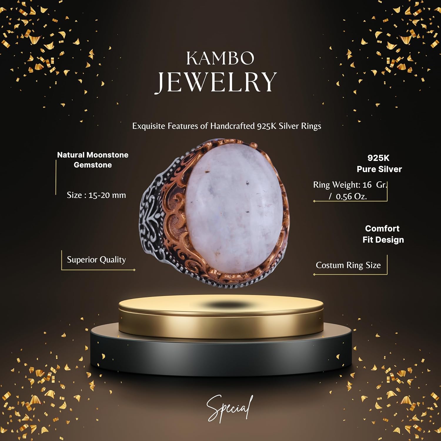 | Taş Tipi | Doğal Kaplangözü Doğal Kaplangözü, altın kahverengi tonları ve ipeksi parlaklığıyla tanınan çarpıcı bir taştır. Genellikle cesaret ve kararlılıkla ilişkilendirilmiş; dalgalı desenleri sayesinde enerjik ve dikkat çekici takı tasarımlarında sıkça tercih edilir. |