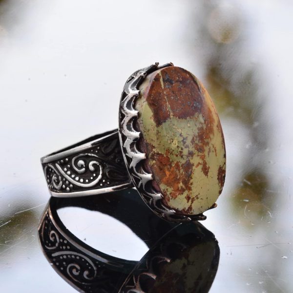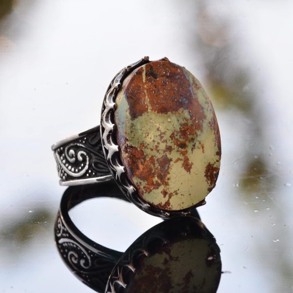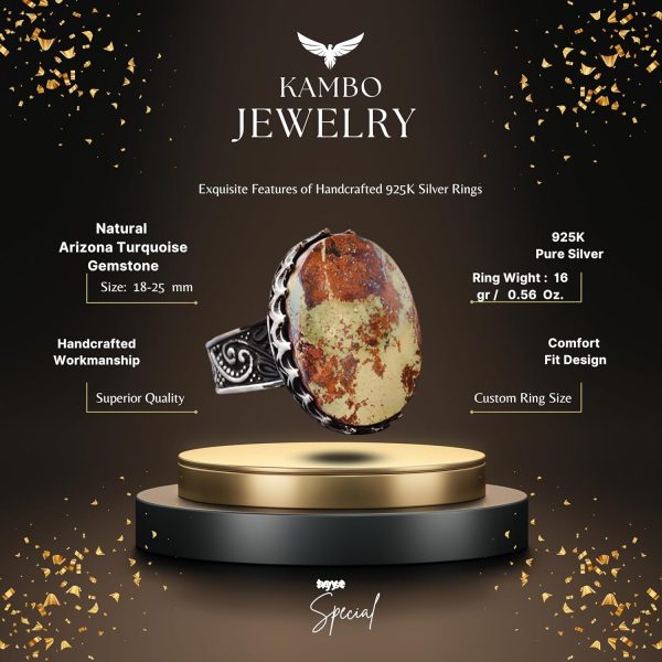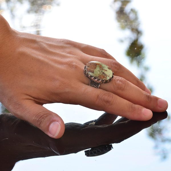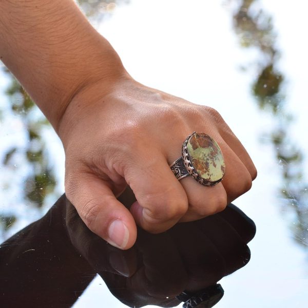 Büyük halka, Gerçek Doğal Arizona Turkuaz Taşı Yüzük, El Yapımı Yüzük, 925 Ayar Gümüş Yüzük Erkekler İçin