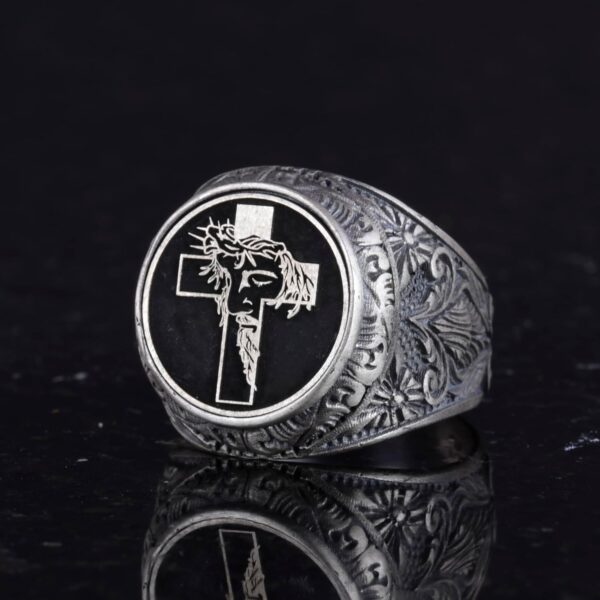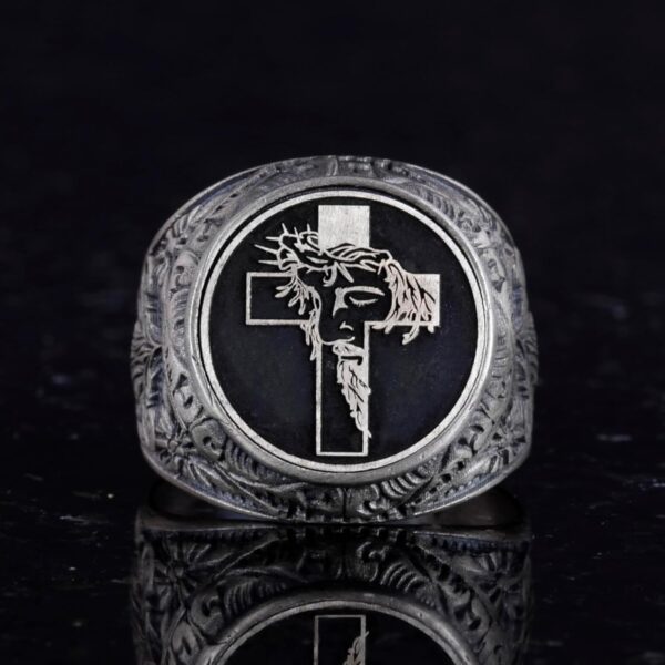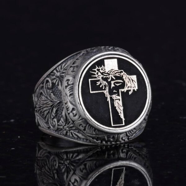 Haç Yüzüğü – Erkekler için 925 Ayar Gümüş Hristiyan Yüzüğü – İsa Yüzüğü