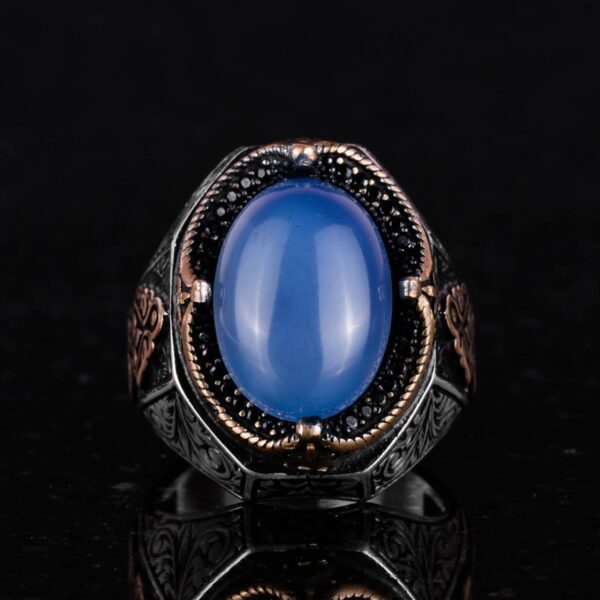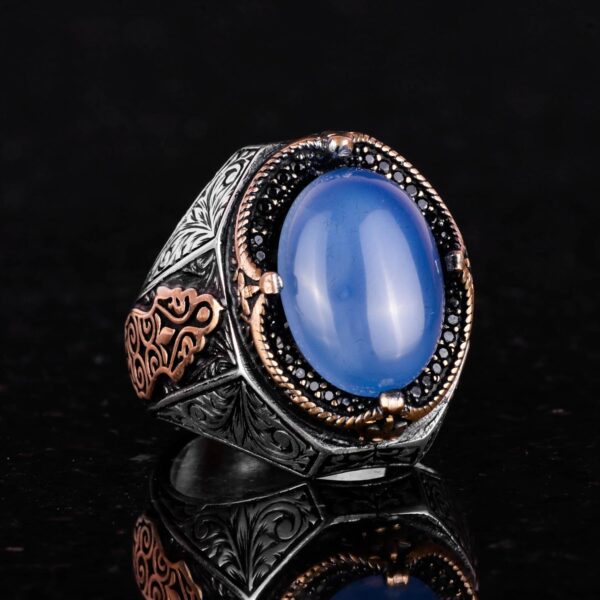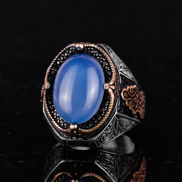 Akik taşı, sağlam gümüş bir bant içinde güzelce yerleştirilmiş olup, zanaatkarlarımızın beceri ve sanatını sergilemektedir. Her yüzük titizlikle el yapımıdır, böylece her parça benzersiz ve en yüksek kalitede olur.
