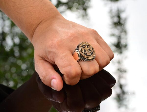 Çift Başlı Kartal Erkek Yüzüğü, Hayvan Yüzüğü, 925 Ayar Gümüş Yüzük