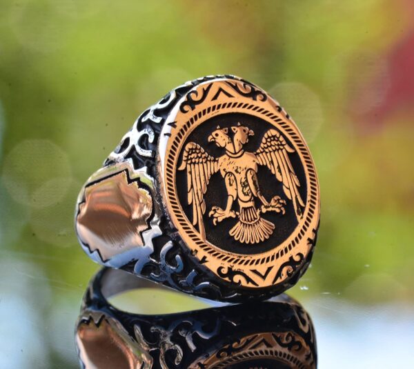 925 ayar gümüş erkek yüzük, Çift Başlı Kartal Erkek Yüzüğü: ağırlık: 15.37gr