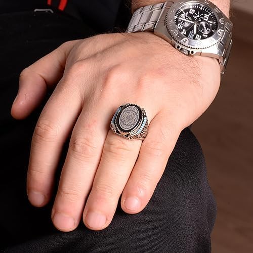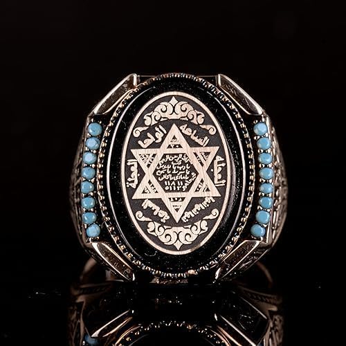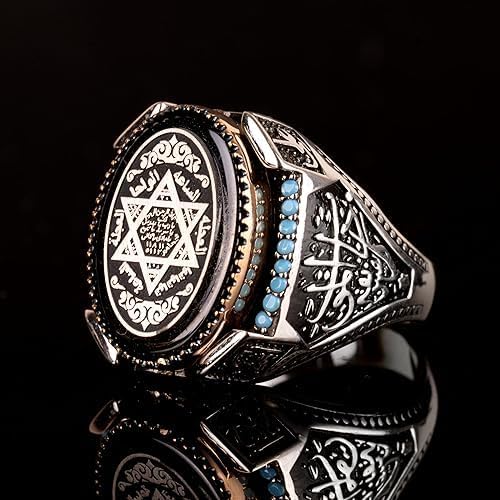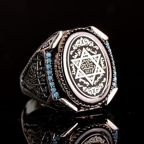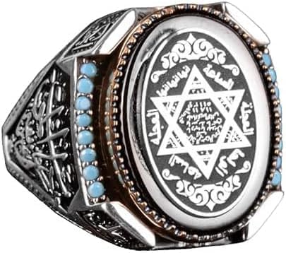 David Yıldız Yüzüğü, Süleyman Mührü Yüzüğü, Arap Yüzüğü, 925K Katı Sterlin Gümüş Yüzük Erkekler için Ağırlık: 20,30 gr