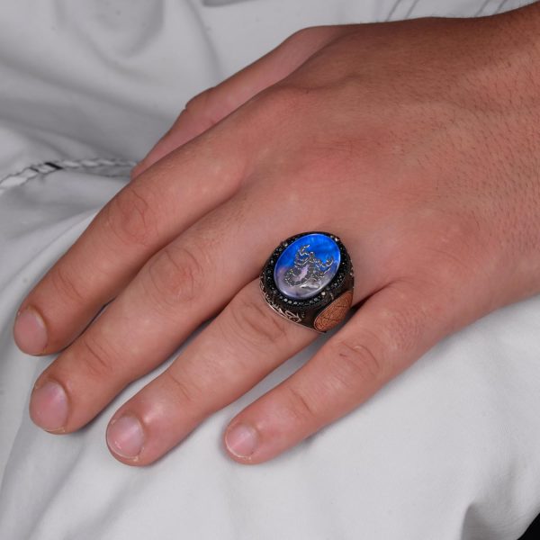 David Yıldızı Desenli Yüzük – El Yapımı Yüzük – 925 Ayar Gümüş Erkek Yüzüğü (Akrep)
