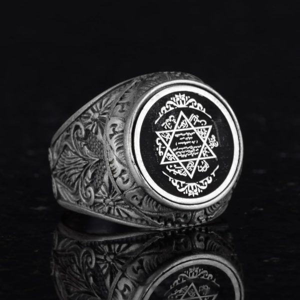 El Yapımı Davut Yıldızı Yüzüğü – Erkekler için 925 Ayar Gümüş Süleyman Mührü Yüzüğü