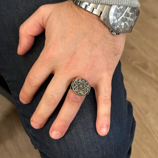 Yüksek kaliteli 925 ayar gümüşten üretilen Star of David Erkek Yüzüğümüzün mistik zarafetini deneyimleyin. Bu muhteşem parça, ikonik Star of David’i içermekte olup hem tarihi hem de kültürel bir anlam taşımaktadır. Yüzük, mistik ve benzersiz bir dokunuş katan karmaşık detaylarla tasarlanmış olup, her takı koleksiyonunda öne çıkan bir parçadır.