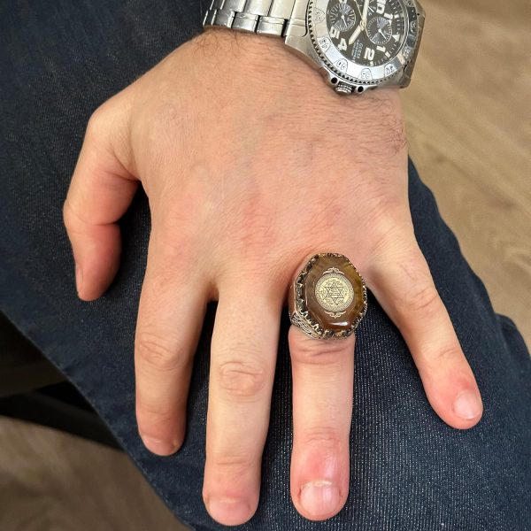 David Yıldızı Erkek Yüzüğü, El Yapımı Yüzük, 925 Ayar Gümüş Erkek Yüzüğü