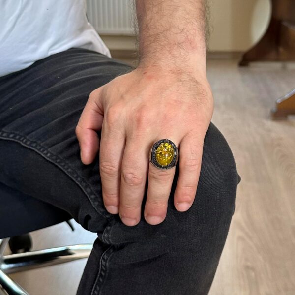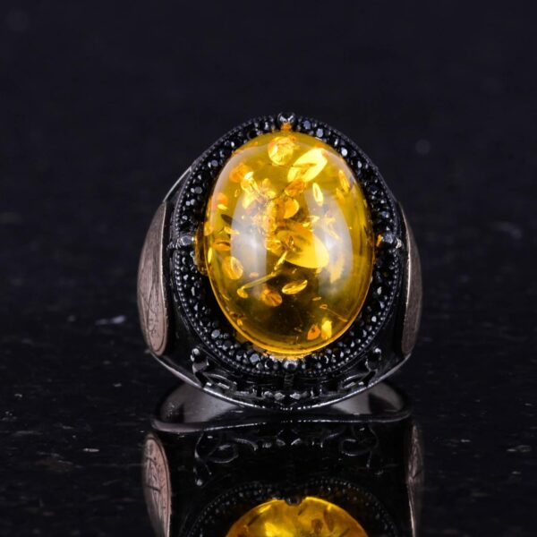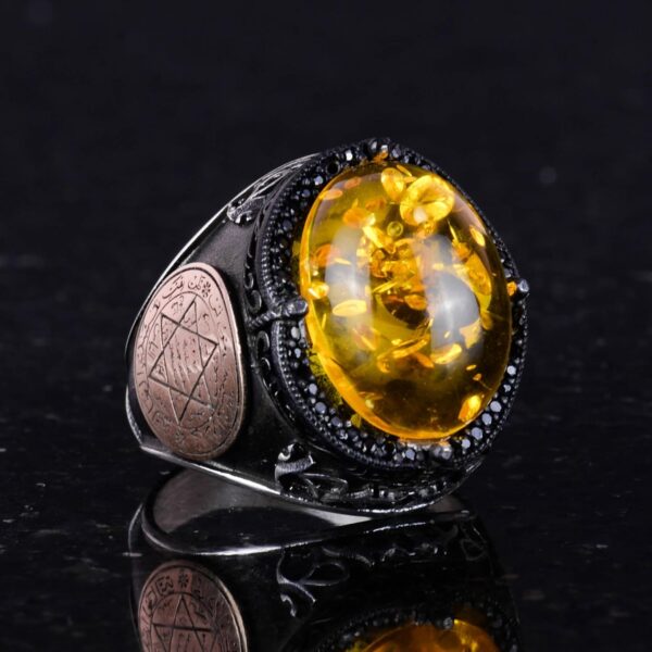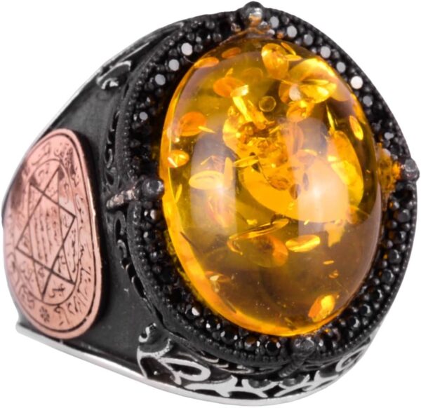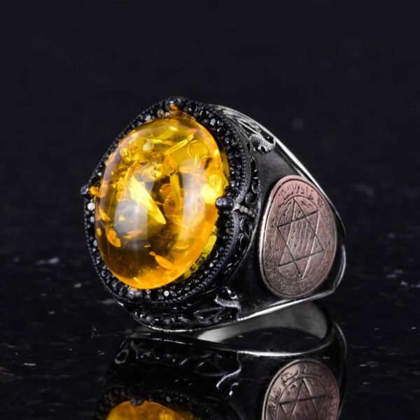 David Yıldızı Yüzüğü, Yapay Taş Yüzük, 925 Ayar Gümüş Süleyman Yüzüğü (Bal Amber Yapay)