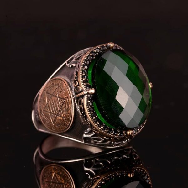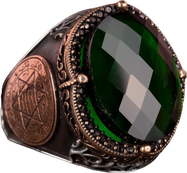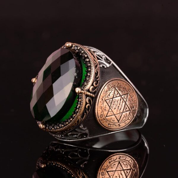Davud Yıldızı Yüzüğü, Yapay Taş Yüzük, 925 Ayar Gümüş Süleyman Yüzüğü (Yeşil Yapay Taş)