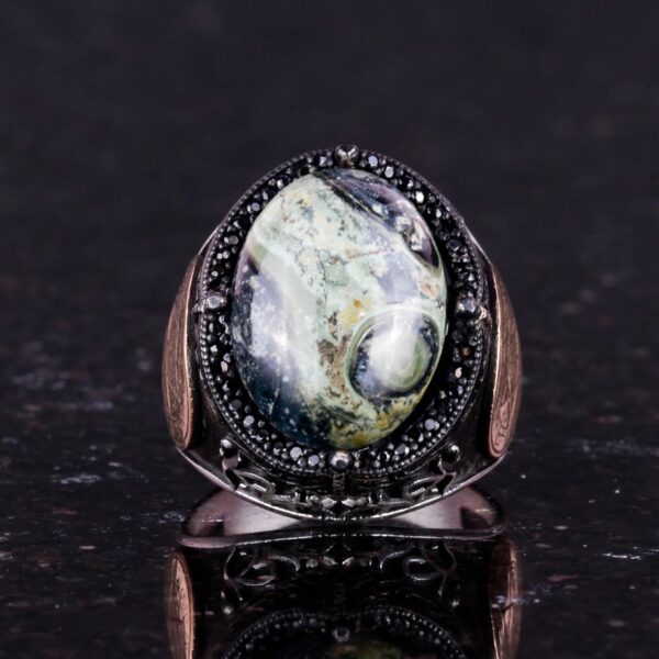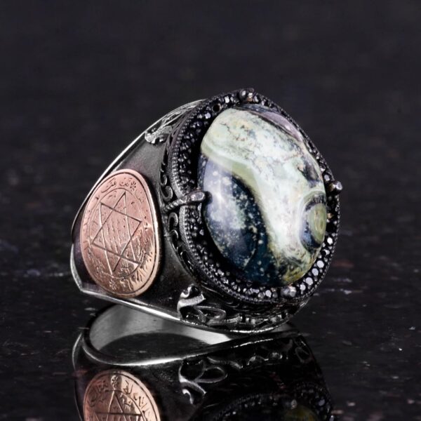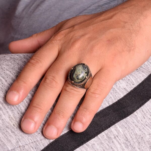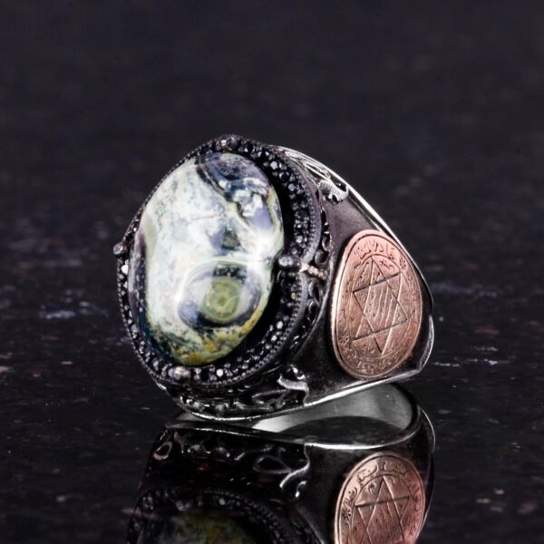 David Yıldızı Yüzüğü, Yeşil Göz Taşlı Yüzük – Canlı 925 Ayar Sert Gümüş Erkek Yüzüğü