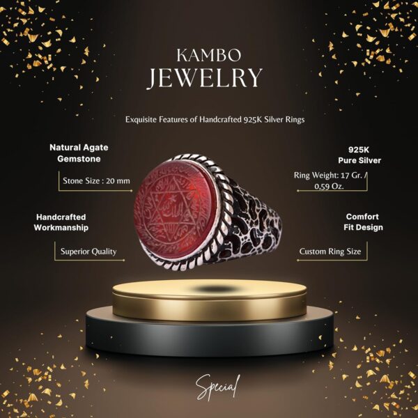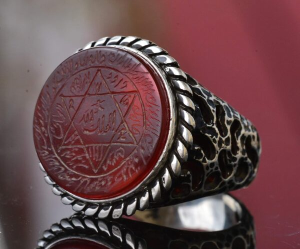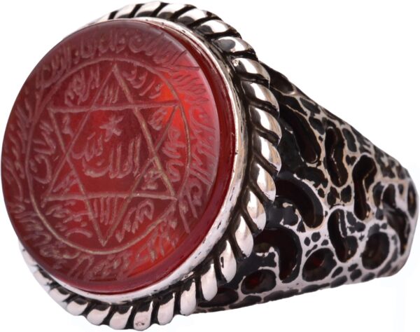 Bu muhteşem yüzük, ikonik Davut Yıldızı ve Süleyman Mühürü’nü içermekte olup, derin tarihi ve ruhsal bir anlam katmaktadır. Günlük olarak ya da özel günlerde takıldığında, çok yönlü tasarımı her kıyafetle mükemmel uyum sağlar.